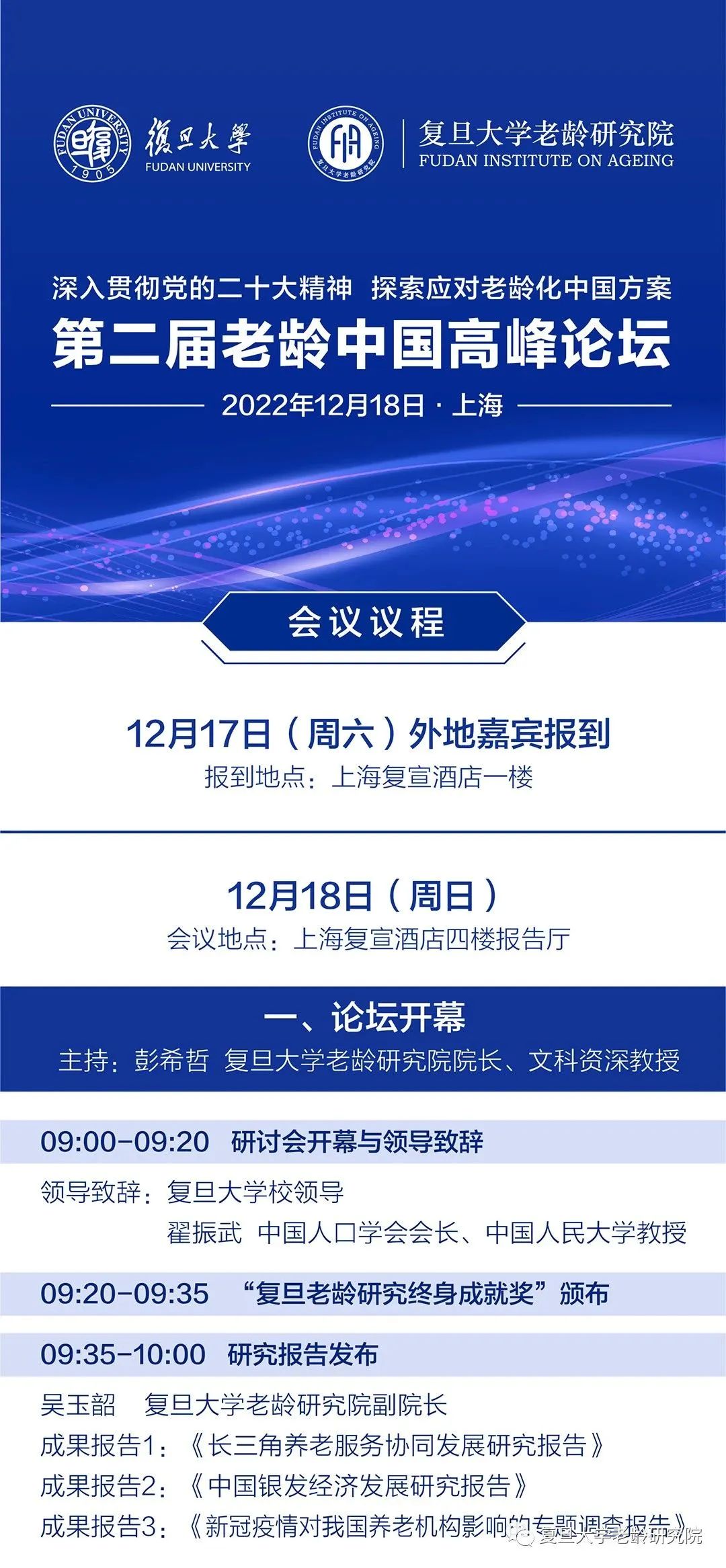深入贯彻党的二十大精神 探索应对老龄化中国方案——第二届老龄中国高峰论坛会议议程