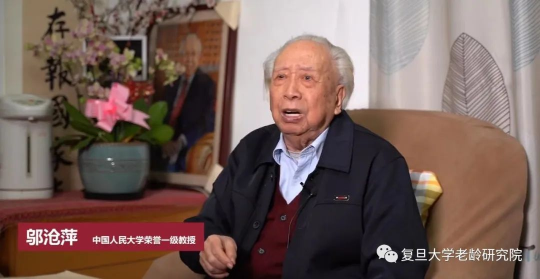 邬沧萍教授在发表获奖视频感言时表示,为获得“复旦老龄研究终身成就奖”感到荣幸。他回顾了复旦大学和中国人民大学携手推进中国人口学、老年学学科建设和学术研究的峥嵘岁月,指出未来中国老龄科学研究应更加关注广大的农村地区,并为世界人口老龄化的应对、构建人类命运共同体贡献中国智慧。邬沧萍教授期待各界的老龄学者携起手来,共同推动老龄研究蓬勃发展。