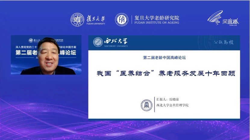 西北大学公共管理学院院长、教授雷晓康发表了题为《我国“医养结合”养老服务发展十年回顾》的演讲。他提出,我国的医养结合政策日趋完善,经历了起步探索、深度发展、增效改革三个阶段;医养结合工作进展取得丰富成效,在积极融入国家战略与改革完善政策措施、建立健全服务体系与加快建设人才队伍、不断完善标准规范与持续提升服务质量、发挥试点示范作用与协调推动产业发展等方面尤为显著。他认为,未来要推动医养结合实现高质量发展,应坚持贯彻新发展理念,打通健康养老的“最后一公里”,需要在发展居家社区医养结合服务、推动机构开展医养结合服务、完善支持政策和加强引才育才等方面着力,打通堵点、破除痛点、解决难点。