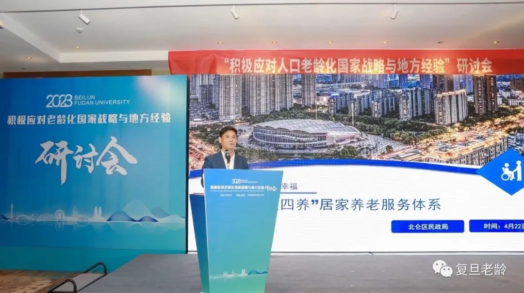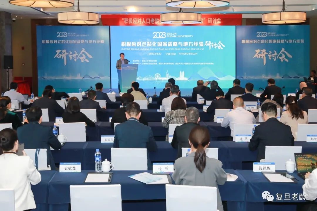 2023年4月22日,由复旦大学老龄研究院、宁波市北仑区民政局主办的“积极应对人口老龄化国家战略与地方经验”研讨会在宁波市北仑区举行。研讨会以“积极应对人口老龄化国家战略与地方经验”为主题,尝试推进政-产-学-研各界深入交流探讨、共享思想成果。参会嘉宾包括来自中国人民大学、北京大学、浙江大学、南开大学、西安交通大学、南京大学、河北大学、南通大学、西安财经大学、复旦大学等高等院校的专家学者,与浙江省民政厅、宁波市民政局、北仑区政府、上海市政府发展研究中心的相关领导以及复旦大学老龄研究院和北仑区民政局团队成员,合计约70余人。