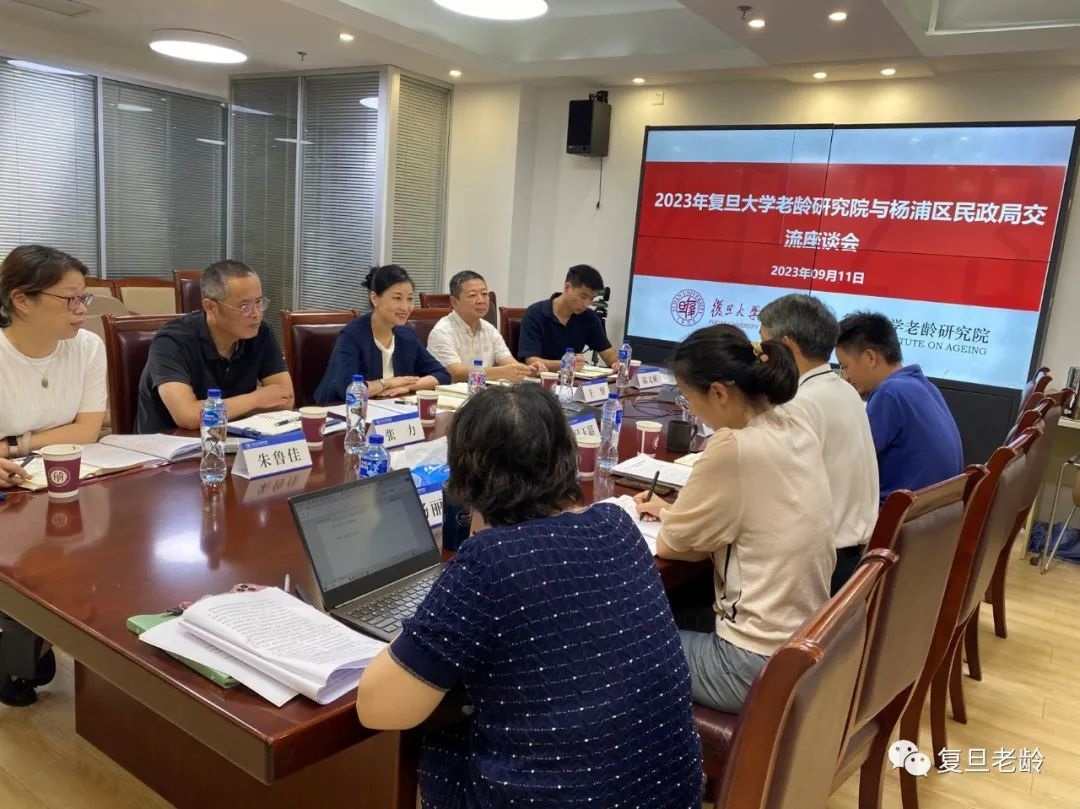 复旦大学人口与发展政策研究中心主任助理苏忠鑫、复旦大学发展研究院助理研究员宋靓珺等分别对研究院与杨浦区的历史渊源及合作基础进行了介绍。复旦大学老龄研究院培训中心主任杨丽君老师对杨浦区在医养结合和智慧康养等方面的工作表示赞赏,同时也表示复旦大学作为中组部确定的全国干部培训高校基地,十分欢迎与杨浦区民政局在人才培训方面有更多合作。吴玉韶副院长总结表示,复旦大学主校区在杨浦区,研究院师生也大多工作生活在杨浦,对杨浦有深厚的感情,既往双方的合作有限,但徐局长今天的到来,将是研究院未来与杨浦区民政、杨浦区养老合作的全新开始,研究院也非常愿意跟杨浦区民政局建立更加密切的合作关系,深入杨浦区调研学习,共同推动杨浦老龄工作的开展和提升。