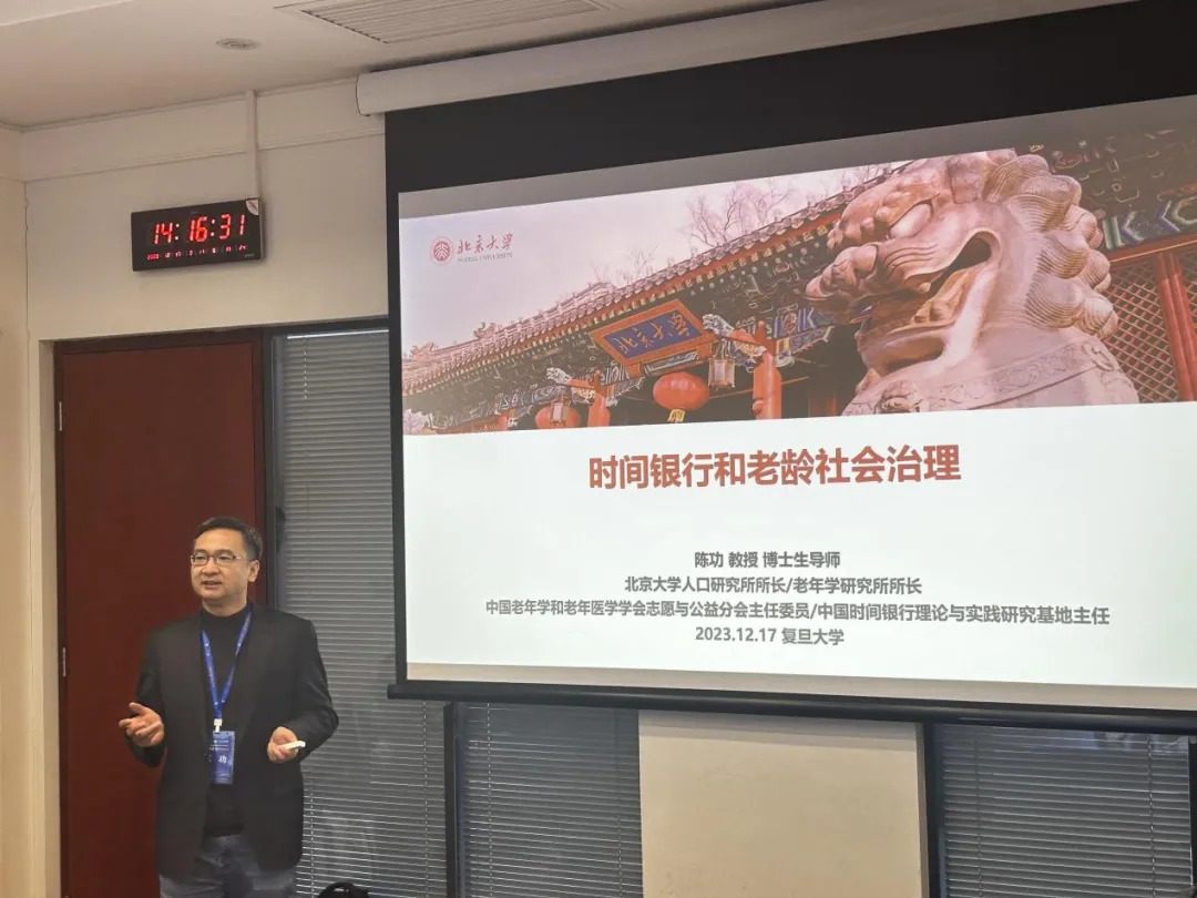北京大学人口研究所所长陈功教授的发言主题是《时间银行和老龄社会治理》。他指出,现在很多的为老服务都是单方向服务提供,但社会治理中更多提到的是“共建、共享、共融”,也是未来社会发展的需要。他提出,除了有为的政府、有效的市场,“时间银行”则提供了第三种道路,风险共担、道路整合、互济互助,建立一个以信任为核心的友好社会。时间银行将“时间”和“公益”挂钩,倡导社区成员把闲散时间加以积极利用,帮助有需要的人,把帮助所付出的时间存储起来,当自己有需要时从中支取“已存储时间”。为鼓励更多服务供给主体参与到时间银行服务工作中,增强供需双方匹配度,切实提升有需求的老人服务被响应的概率,应最大限度吸引各类人群成为志愿者。最后,他提到,作为一种创建养老互助新模式,“时间银行”不仅能够缓解养老负担,还能够积累社会资本、整合社会力量,引领志愿与互助新风尚。