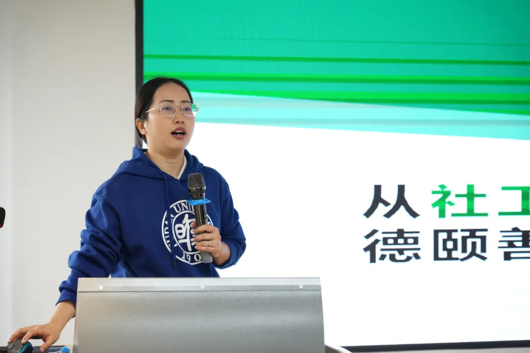 “问道”班学员、苏州德颐善金仓养老产业有限公司总经理孙陈,分享了从社工机构到养老企业德颐善的社企融合之路,她指出德颐善以“专业有爱·让养老更简单”为使命,致力于用专业服务与科技赋能社区,通过整合社区资源,建立以老人为中心的全方位、全周期的社区养老服务体系,助推养老行业智慧化转型。同时,她对德颐善以专业社工为核心,以本土化跨专业团队为支撑迭代创新的本土养老服务模式进行了详细介绍。在养老事业、养老产业协同发展大背景下,德颐善将继续探索社工主导的县域养老模式跨地区的复制落地,实现从县域生态逐步发展到区域生态。