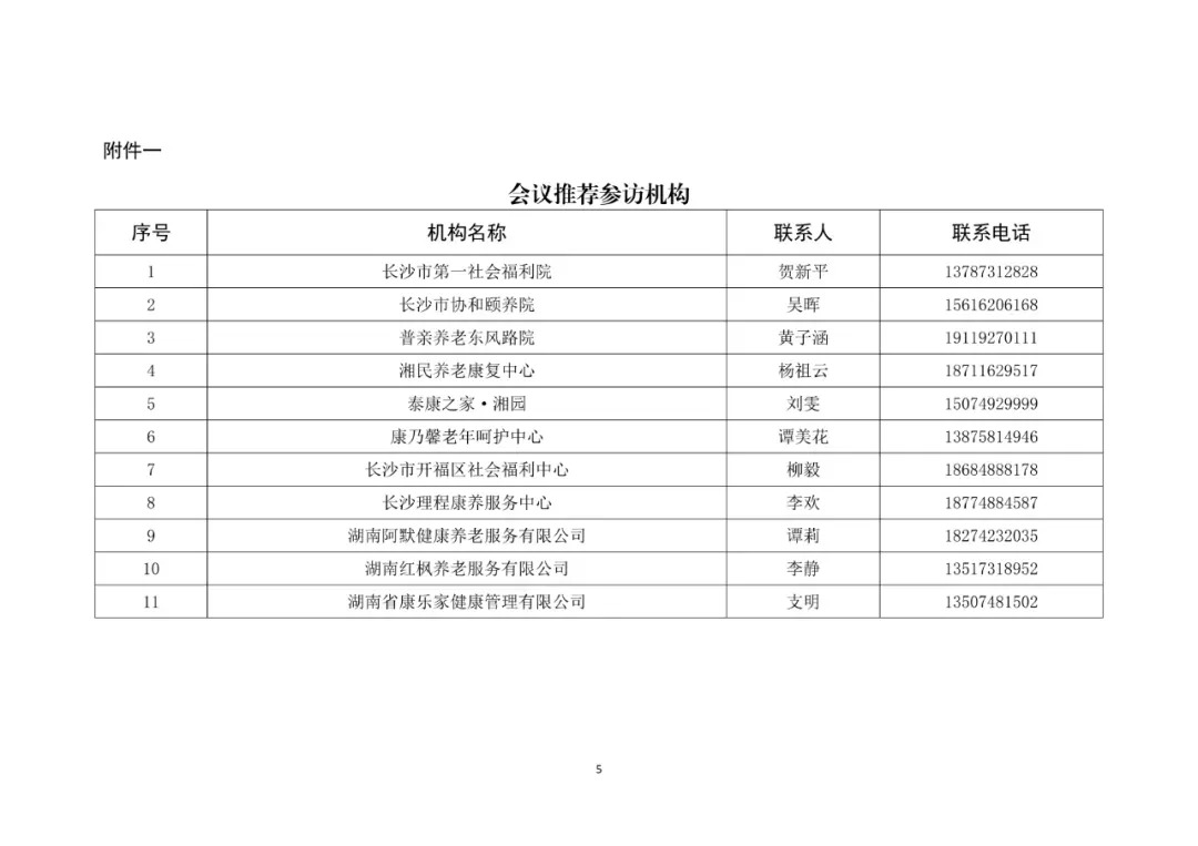 现场观摩:大会将组织与会者观摩长沙市优秀养老机构,自行前往交流学习(11家机构名单详见附件一,建议提前预约)。