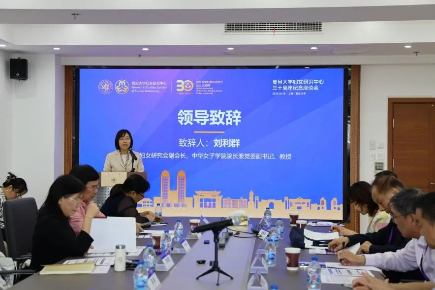 中国妇女研究会副会长、中华女子学院院长兼党委副书记刘利群教授致辞。她对复旦大学妇女研究中心成立30周年表示热烈祝贺,充分肯定了其在推动性别平等与妇女发展中的重要作用和成果。她提出四点“希望”:一是坚持正确方向,将党的二十届三中全会精神与习近平总书记关于妇女儿童及家庭建设的重要论述相结合,夯实理论基础;二是提升研究水平,聚焦“十四五”收官与“十五五”规划,产出前瞻性成果;三是加强中国特色妇女理论的国际传播,借北京世界妇女大会30周年契机,展示中国经验;四是推动中心创新发展,培养高质量人才,为中国特色社会主义妇女事业贡献力量。刘利群也代表中华女子学院提出未来继续与各位专家同仁共同努力、搭建平台,推动中国妇女研究进步。