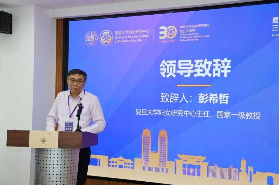 复旦大学妇女研究中心主任、文科资深教授彭希哲向到场的领导、专家及女界朋友们表示热烈欢迎。他回顾了妇女研究中心30年来的艰辛历程与辉煌成就,向一直以来支持和关心中心发展的上级单位表示诚挚的感谢。他期待,未来由一批后继年轻学者接过妇女研究中心的光辉旗帜,在理论研究与政策推广等领域不断创新,做出更多卓越贡献,为推进中国式现代化建设和妇女事业发展。