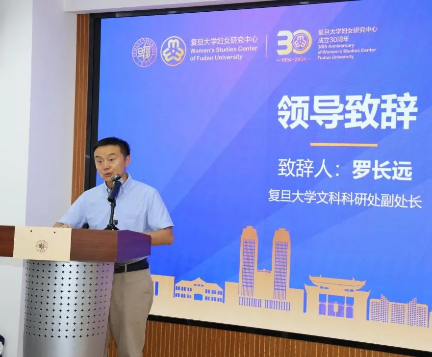复旦大学文科科研处副处长罗长远向复旦妇女研究中心成立30周年表示祝贺,并对出席座谈会的嘉宾和专家学者表示欢迎。他指出,在彭希哲教授与王菊芬教授的带领下,中心始终以科学研究为基础,服务社会,推动妇女与家庭发展的跨学科研究,取得了丰硕成果。随着中国步入少子老龄化社会,妇女发展研究进入了新阶段。他期待中心进一步加强与国内外相关机构的交流与合作,为构建中国特色社会主义妇女发展道路贡献智慧与力量。