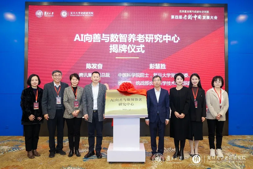陈发奋先生与彭慧胜院士共同为复旦大学AI向善与数智养老研究中心揭牌。据悉,复旦大学AI向善与数智养老研究中心由复旦大学老龄研究院负责运行和管理。中心在为学科发展服务的同时,也将致力于推动老龄交叉学科、社会计算等专业学科的发展,并作为老龄研究院老龄事务管理专业硕士项目的实训基地。未来中心的研究不仅能够为老年群体的人工智能技术使用提供科学系统的分析和深入理解,更能够为上海乃至整个中国的AI向善型老龄社会建设提供新质生产力。