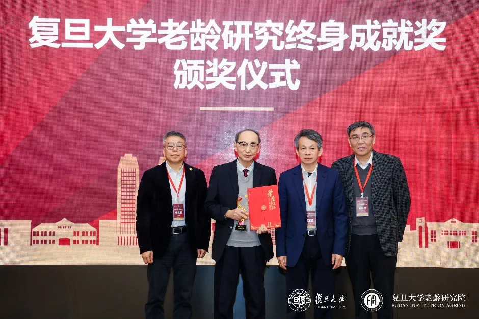 论坛开幕式上,华东师范大学终身教授桂世勋获颁“复旦老龄研究终身成就奖”,以表彰他数十年来为中国人口学和老年学研究做出的不懈努力和卓越贡献。复旦大学老龄研究院副院长吴玉韶教授为桂世勋教授颁发证书,桂世勋教授发表了获奖感言。