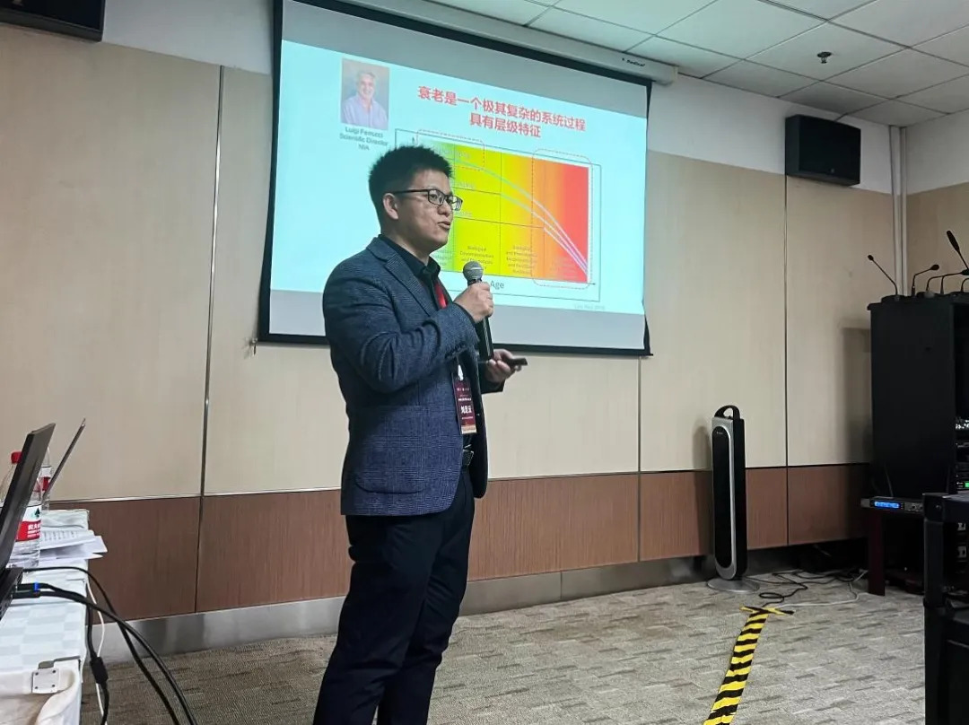 浙江大学公共卫生学院刘足云研究员汇报主题为“机体衰老的多层级评估”。他基于衰老的多层级学说,展开介绍了团队在不同层面评估衰老的系列研究。在数据基础方面,建设具有多维度纵向衰老表型组学数据的我国人群纵向队列——如皋队列与浙江增龄健康纵向队列。在指标测量方面,其团队关于认知衰弱、表型年龄及DNA甲基化时钟和代谢时钟的多层级评估衰老的成果显著,首次提出了表型年龄、Meta时钟多个原创性新型评估模型。刘足云强调,应从全生命周期视角出发解析衰老影响因素,既要具备研究广度以覆盖多种环境、社会和生物学因素,也需具备深度关注衰老本身的复杂动态过程,从而为精准干预衰老、促进健康老龄化提供科学依据。