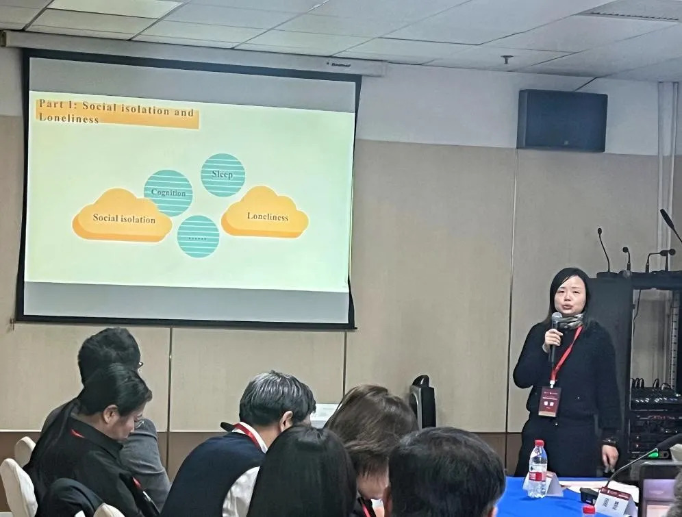 西南大学心理学部喻婧教授汇报题目为“社交隔离与孤独的不对称性:老年人社会韧性改变的机制及预测”。喻婧指出老年人个体综合认知有助于抵消睡眠障碍,尤其是睡眠中觉醒给自身社交隔离带来的负面影响;老年人社交隔离和孤独具有不对称性,即有些个体有丰富的社会网络但仍感到孤独,而有些个体社会隔离程度高但却不感到孤独;抑郁、压力、焦虑、睡眠障碍和Type A人格是影响老年人社会韧性的主要影响因素。她表示,老年人是具有“自愈”能力的,即使社会隔离程度在增加,但并不一定会走向高孤独,“孤独并非必然”。