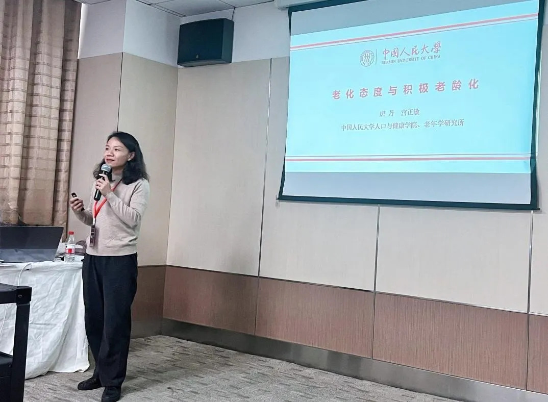 中国人民大学人口与健康学院唐丹教授做了题为“老化态度与积极老龄化”的汇报。唐丹从老化态度的起源谈起,立足主体、评价和态度的双重性视角回顾了老化态度的界定。展开区分由个体经历形塑的个体老化态度与由社会建构的社会老化态度,从而剖析中国迈向积极老龄化的路径与挑战。她指出,中国社会对老年人的歧视与偏见在数字化时代尤为凸显。例如将老年人互联网使用贴上“数字鸿沟”、“网瘾老人”等标签。她强调,青中老年的生命历程是连续的,老年只是发展的阶段;个体差异远大于年龄差异,需避免脸谱化,并辩证看待老年期的多维发展;应系统研究社会老化态度,推动形成正确、客观的认知,营造包容、理性的积极老龄化氛围。