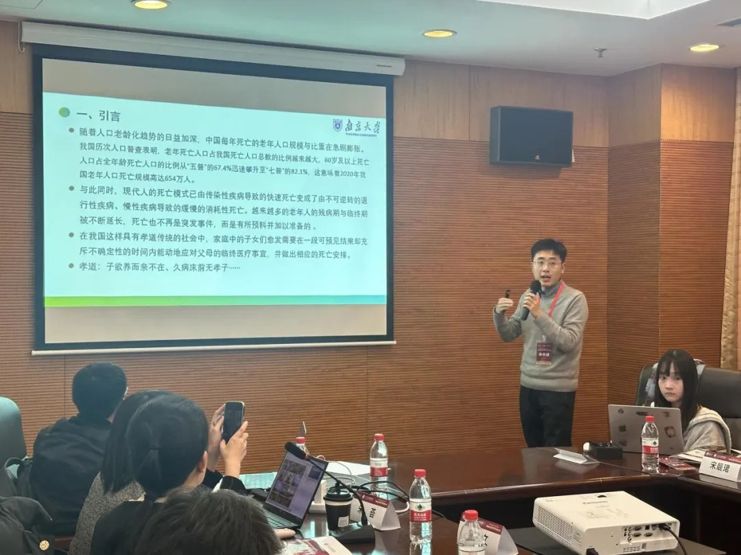 南京大学新闻传播学院的助理研究员孙永健博士,以“为无价的父母定价:老年临终医疗中的金钱与孝道”为主题进行了报告。他指出,随着我国人口老龄化趋势的日益加深、死亡模式向消耗性死亡的转变,中国家庭愈发需要在一段可预见结果却充斥不确定性的时间内应对老年人的临终医疗事宜。孙博士运用质性研究方法,认为在老人临终时,子女们为老人“花钱看病”与“花钱尽孝”具有多重意义。他深入探讨了老年临终关怀中金钱与孝道的融合与冲突,以及有价医疗开支与无价孝道的关联与互构。