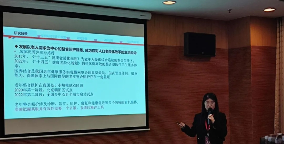 西安交通大学人口与发展研究所助理教授王莹以“老年整合照护服务有效性评价指标体系构建研究”为题作报告。她指出老年整合照护是涉及医疗、照护、康复和健康促进等多个领域的有机整体,准确把握其有效性需构建一个系统、多维的评价指标体系。目前已有关于整合照护的评价工具主要侧重组织和行政整合,关注服务质量评价,对于整合照护服务有效性的评价比较少。她提出应坚持系统观,从供给和需求两端入手,采用主客观结合方法等建立指标体系,以促进养老服务评估的科学化、常态化。
