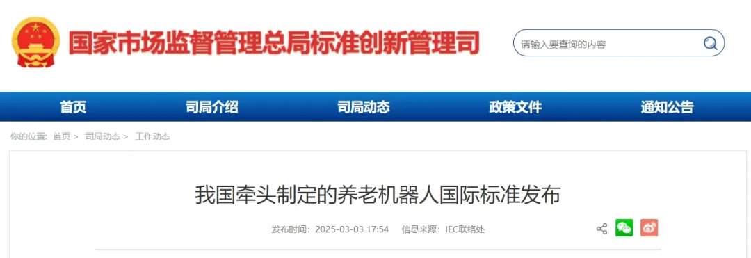 2025年1月,16台宇树科技H1通用机器人亮相蛇年春晚,跳起了秧歌舞,让人们对国产机器人的兴趣陡增。2月,国际电工委员会(IEC)正式发布由我国牵头制定的养老机器人国际标准(IEC 63310《互联家庭环境下使用的主动辅助生活机器人性能准则》),令人们对科技助力养老的未来充满期待。
