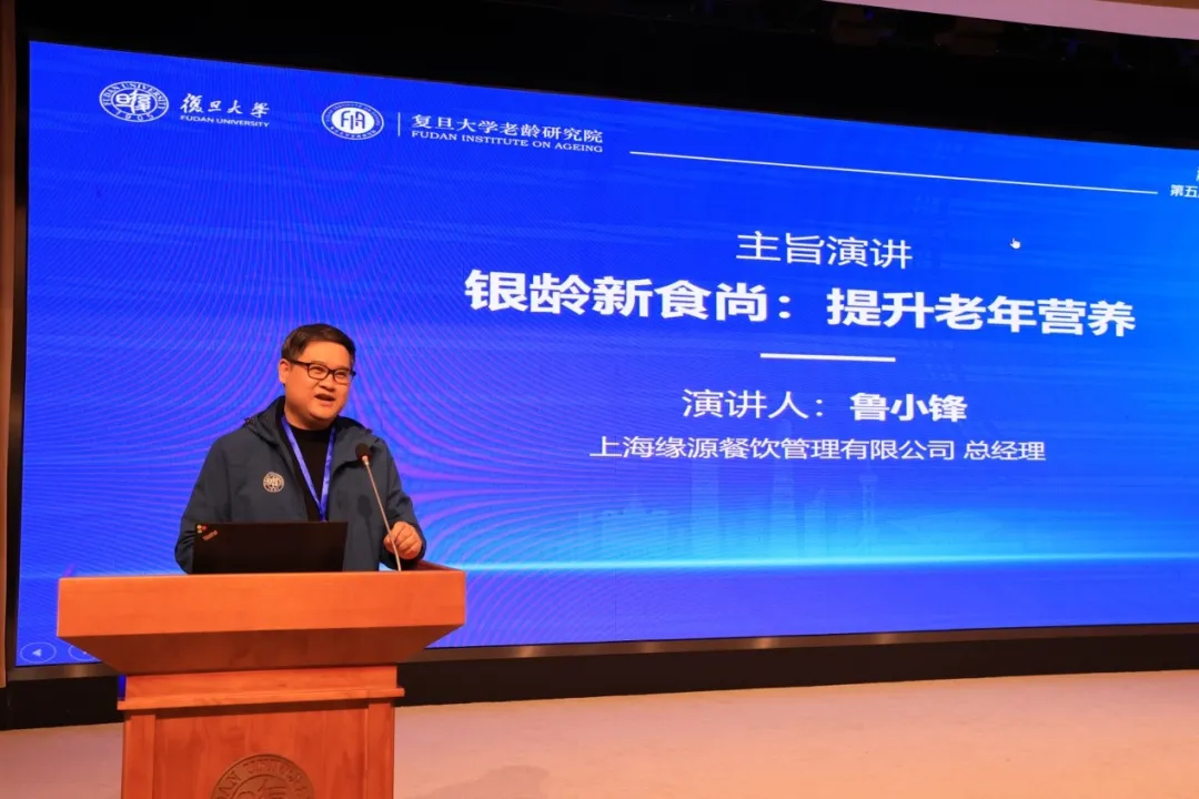 上海缘源餐饮管理有限公司总经理鲁小锋的演讲主题为《银龄新食尚:提升老年营养》。他指出,“吃得健康”已成为老年人品质生活的核心诉求,老年营养应从“吃饱”转向“精准适配身体状态”。他介绍了“蜂邻生活”智能营养平台,利用AI面诊与舌诊生成个人健康档案,实现个体化饮食推荐与线上线下联动,让“营养看得见、健康可追踪”。他呼吁社会各界共同推动“主动健康管理”成为银发生活的新潮流。